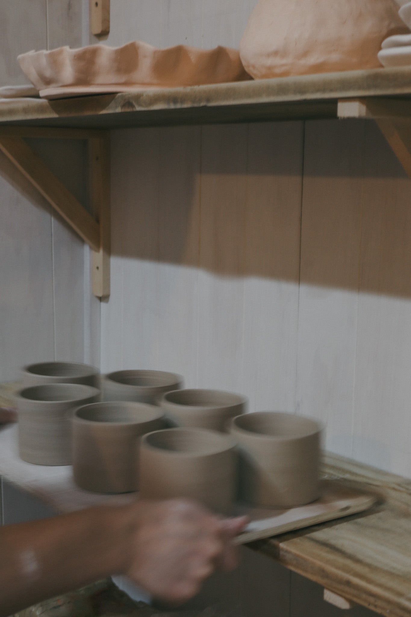 Once I outgrew my spot at the kitchen table, it was time to create a space where I could create my ceramics, and keep my mess isolated in a room of its own. Originally a stable, we lined the room and built in some wooden windows at the back. Added a few shelves, a bench, and called it my studio.